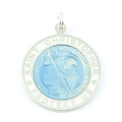 Large Sterling Silver St. Christopher Medal (Babyblue-White)