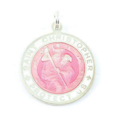 Large Sterling Silver St. Christopher Medal (Fuchsia-White)