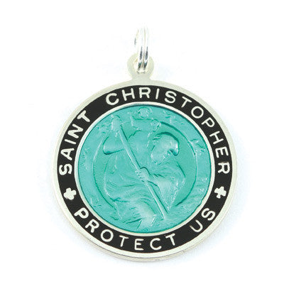 Large Sterling Silver St. Christopher Medal (Kellygreen-Black)