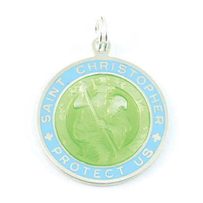 Large Sterling Silver St. Christopher Medal (Lime-Babyblue)