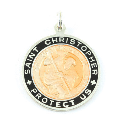 Large Sterling Silver St. Christopher Medal (Orange-Black)