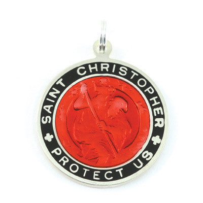 Large Sterling Silver St. Christopher Medal (Red-Black)