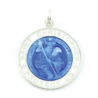 Large Sterling Silver St. Christopher Medal (Royalblue-White)