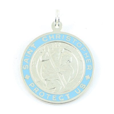 Large Sterling Silver St. Christopher Medal (Silver-Babyblue)