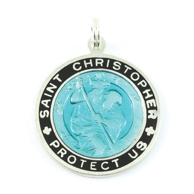Large Sterling Silver St. Christopher Medal (Teal-Black)