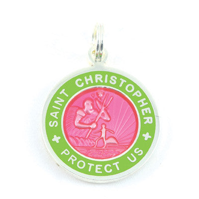 Small Silver-plated St. Christopher Medal (Fuchsia Lime)