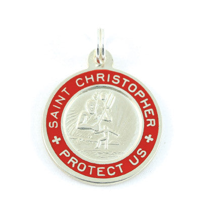 Small Sterling Silver St. Christopher Medals (Silver-Red)