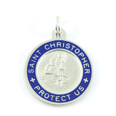 Small Sterling Silver St. Christopher Medals (Silver-Royalblue)